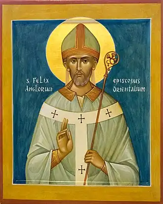 Беда описывает, как усилия короля Сигеберхта Восточной Англии «были благородно поощрены епископом Феликсом, который, приехав к Гонорию, архиепископу, из тех мест Бургундии, где он родился и, рукоположённый, и сказав ему, чего он желает, был послан им проповедовать Слово жизни вышеупомянутой нации Англов»[11]. Более поздние источники, как правило, отличаются от версии событий, описанной Бедой и Англосаксонской хроникой. В Liber Eliensis, английской хронике и истории, написанной в аббатстве Эли в XII веке, говорится, что Феликс прибыл с Сигебертом из Франции, а затем был назначен епископом Восточной Англии[12]. Согласно другой версии этой истории, Феликс отправился из Галлии и добрался до деревни Бабингли по реке Бабингли. Затем он направился в Кентербери. Он был рукоположён в сан епископа примерно в 630 или 631 году[13] архиепископом Кентерберийским Гонорием[14].