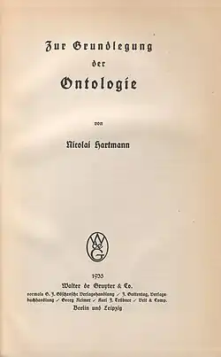 В 1948 году в связи с предстоящей публикацией четвёртого тома своей онтологии — «Философии природы» — и переизданием первого тома («К основоположению онтологии») Гартман писал[31]: