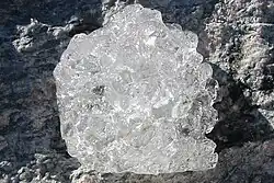 - Если температуры всё время остаются ниже нуля, то снег уплотняется под давлением вышележащих слоёв, отдельные кристаллы льда (снежинки) начинают разрушаться, срастаться и перемещаться, плотно заполняя промежутки между собой, в результате формируется рекристаллизационный фирн.