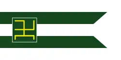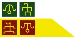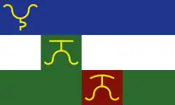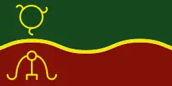 Флаг состоит из зелёного поля заряженного двенадцатью золотыми звёздами, девять из которых образуют дугу, напоминающую лук, и три горизонтальные, также заряженные тремя скрещенными стрелами в центре[6].