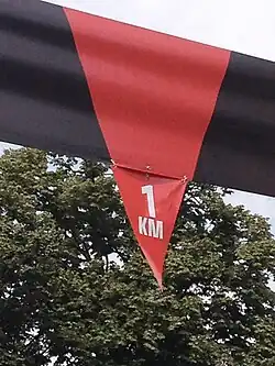 Обычно Flamme rouge располагается на надувной или жёстких арке различных видов с изображением главного спонсора.nolines