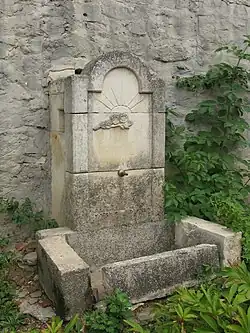 Первый из фонтанов датируют XVIII—XIX веками[1]. Фасад его с аркой сложен из хорошо обработанных блоков камня-известняка. Верх фасада обрамлен профильным карнизом. Когда-то в него была вставлена мраморная плита с изображением латинского креста, клобука и ангелов над облаками. Сейчас она похищена. Оформление фонтана и его архитектура типичные для армянского искусства, подобных сооружений немало и в самой Армении.