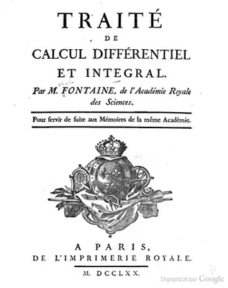 - Главным предметом работ Фонтена были дифференциальные уравнения. Важнейшие из написанных им статей были позднее изданы вместе сборником, вышедшим в 1764 г. «Mémoires des mathématiques, recueillis et publiés avec quelques pieces inédites» (Париж).
