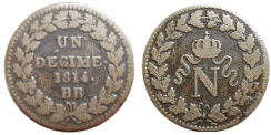 В период Первой империи, в 1807—1810 годах вместо десима чеканились биллонные монеты в 10 сантимов. Бронзовые монеты в 1 десим чеканил только монетный двор в Страсбурге, в 1814 и 1815 годах[2]. Монеты этого же типа, но с монограммой «L», чеканились в Страсбурге и в период Реставрации[3].