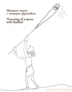 В дальнейшем фустибал люди превратили в станковый метательный агрегат, а далее в требушет.
