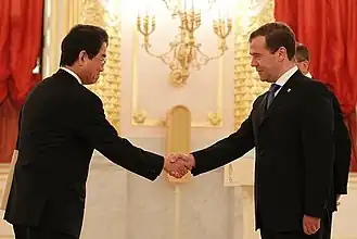 - ↑ «Japanese ambassador to spy on Dmitry Medvedev?» Архивная копия от 14 июля 2014 на Wayback Machine