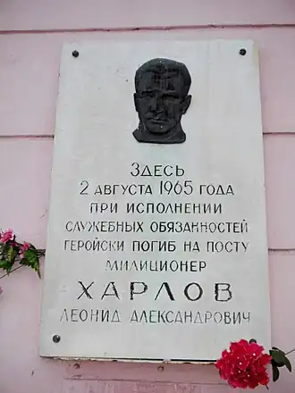 - ↑ МЕМОРИАЛЬНАЯ ДОСКА ХАРЛОВУ ЛЕОНИДУ АЛЕКСАНДРОВИЧУ, КУКАРСКИХ ИВАНУ ФИЛИППОВИЧУ, МАСЛЕННИКОВУ ВИТАЛИЮ ТИТОВИЧУ Архивная копия от 5 октября 2017 на Wayback Machine
