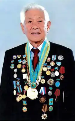 Удостоен звания Почетного гражданина г. Акмолинска в 1959 году; звания Почетного гражданина г. Алма-Аты в 1972 году.