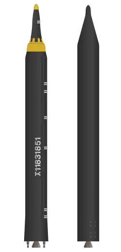 Вес: 28 т (оценка) Длина: 16 м (оценка) Двигатель: жидкостный ракетный Дальность: 3700-6000 км Высота полёта: 2111 км |