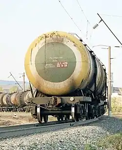 - Хвост грузовых и грузопассажирских поездов обозначается одним красным диском со светоотражателем у буферного бруса с правой стороны;