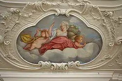 Интерьер главного замка после реконструкции 1980-х годов существенно изменился. Только представительские залы в восточном крыле до сих пор обставлены старой мебелью в стиле барокко. Там же были восстановлены украшенные изящной лепниной потолки, созданные около 1700 года. Частично сохранилась и роспись плафонов середины XVII века, которая представляет особую историческую ценность.
