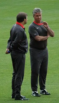 Гус[a] Хи́ддинк (нидерл. Guus Hiddinkо файле, МФА: [ˈɣys ˈɦɪdɪŋk]; род. 8 ноября 1946[7], Варссевелд, Гелдерланд[8]) — нидерландский футбольный тренер, ранее выступавший как футболист на позиции полузащитника. Известен как успешный наставник ряда сильнейших европейских клубов и нескольких сборных. Заслуженный тренер России. На клубном уровне Хиддинк известен по работе с командами ПСВ, «Фенербахче», «Валенсия», «Реал Мадрид», «Реал Бетис» и «Челси»: с ПСВ он выигрывал Кубок европейских чемпионов в сезоне 1987/1988, а с мадридским «Реалом» выиграл Межконтиненальный кубок в 1998 году.