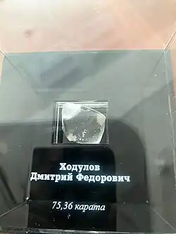 Алмазу весом 75,36 карата присвоено имя Дмитрия Федоровича Ходулова. Октябрь 2022 г.