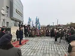 Открытие памятника Д. Ф. Ходулову. 27 сентября 2022 года. У микрофона глава Мегино-Кангаласского улуса Дмитрий Тихонов.