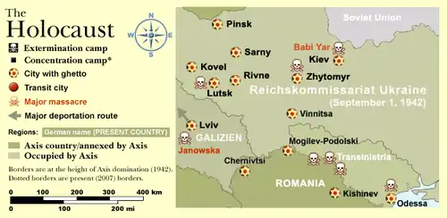 На территории Украины было уничтожено наибольшее количество евреев из граждан Советского Союза — примерно половина всех жертв Холокоста, являвшихся на момент начала Великой Отечественной войны гражданами СССР[2].