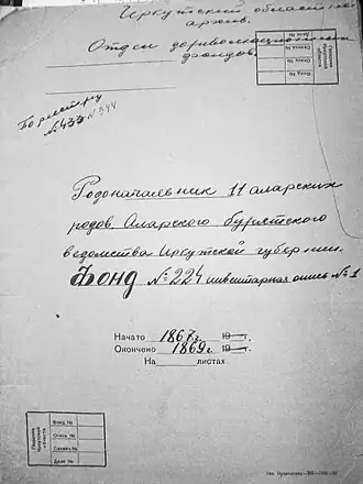 - ↑ Статистические данные, показывающие племенной состав населения Сибири, язык и роды инородцев. Архивная копия от 8 июля 2018 на Wayback Machine (на основании данных специальной разработки материала переписи 1897 г.). Т. III. Патканов С. Иркутская губ., забайкальская, Амурская, Якутская, Приморская обл. и о. Сахалин. — СПб, 1912. — 708 с.
