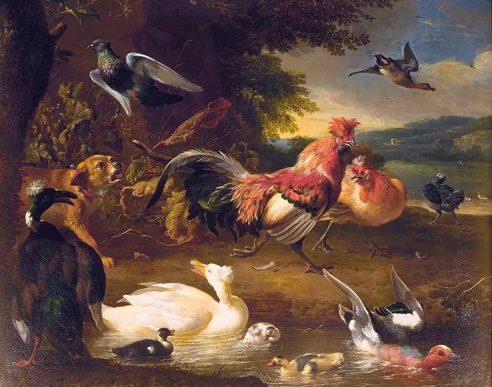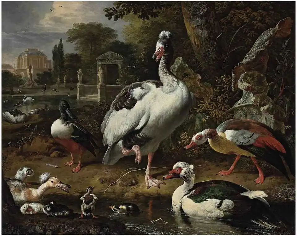 | Хохлатые домашние утки на картинах Мельхиора де Хондекутера (Нидерланды, вторая половина XVII века) | ||
