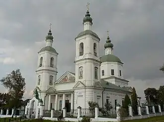 Каменный храм был построен в 1703—1706 годах. В 1786 году к нему пристроили трапезную с двумя приделами — во имя апостолов Петра и Павла и святителя Стефана Сурожского, а также парные колокольни по сторонам западного фасада; с севера и юга к храму добавили два одинаковых притвора.