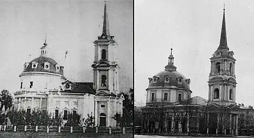 | Приделы | главный, холодный: Во имя Живоначальной Троицы (главный, холодный); теплые: во имя трёх Святителей Московских и всея Руси Чудотворцев Петра, Алексия и Ионы, в честь Чудотворной иконы Божией Матери всех скорбящих радости |