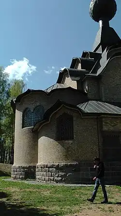 - Самым скромным был проект, разработанный Барщевским и основанный на приёмах псковско-новгородской архитектуры. Храм, тяжёлый по формам, в то же время плавно вздымался вверх благодаря крупным кокошникам. Тенишева передала проект Барщевского для дальнейшей разработки академику архитектуры Владимиру Суслову[22].
