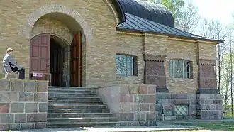 В 1903 году Рерих с супругой впервые посетили имение княгини Тенишевой[53]. Рерих должен был оформить интерьер усадебного дома: сделать эскизы мебели, декоративных тканей и панно[54]. В 1905 году Николай Рерих писал о храме в Талашкине: