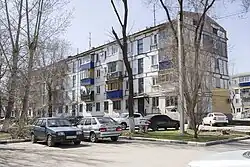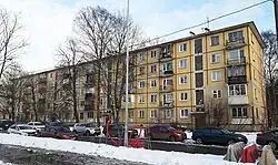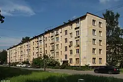 ![]() 1-464 — самая распространённая серия крупнопанельных «хрущёвок». На фотографии модификация 1-464А 1965 года постройки в Гатчине | |