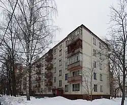 ![]() 1-464 — самая распространённая серия крупнопанельных «хрущёвок». На фотографии модификация 1-464А 1965 года постройки в Гатчине | |