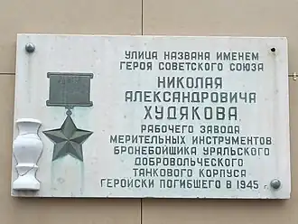 - ↑ Мемориальная доска Герою Советского Союза Худякову Николаю Александровичу. Дата обращения: 12 ноября 2024. Архивировано 20 апреля 2024 года.