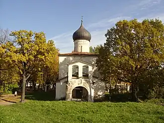 Churches of the Pskov School of Architecture. Church Georgiya so Vzvoza (St. George near the river descent), 1494