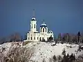 Храмовая часть на северной и южной сторонах образует выступы, завершённые аттиками. Её увенчание — вытянутый купол на отмеченном тем же вертикализмом барабане, который прорезан высокими арочными окнами. Барабан алтарного купола также восьмигранный, но широкий и низкий, а его окна квадратные. Кроме того, в основании этого купола фальшивые люкарны[1].