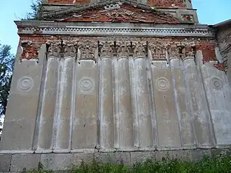 Пояс декоративных арок под навесом крыши, обыгрывающий прием ложных закомар, распространенный в Ярославле, встречается в области на протяжении всего XVIII века (например, Рождественская церковь 1728 г. в Ставотино, Рождественская церковь 1794 г. в Годеново, Казанская церковь 1803 г. в Рожалово).
