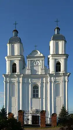 Храм Святой Троицы — памятник архитектуры стиля барокко с элементами классицизма[1]. Представляет собой трёхнефную базилику с небольшим трансептом и прямоугольной апсидой. По бокам главного фасада располагаются две двухъярусные башни, завершенные полусферическими куполами с декоративными фонарями. Между башнями находится фигурный щит, изогнутые фасады боковых крыльев трансепта также завершены фигурными фронтонами. Вход оформлен порталом XIX века в стиле классицизм. Цилиндрические и крестовые своды нефов держатся на подпружных арках между ними[1]. Единственный костел в Беларуси с двухэтажным алтарем.