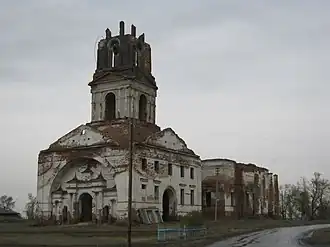 Первое, деревянное здание Сретенской церкви построено в 1736 году. Современное, кирпичное здание в стиле классицизма построено в 1830-е годы. Закрыта церковь при советской власти в 1930-х годах. Церковь представляет собой огромный храм в стиле классицизма с тремя престолами. Главный алтарь посвящён Сретению, а приделы Николаю Чудотворцу, и Воздвижению Креста Господня. Основное здание с колоннами под портиком венчалось большим барабаном под куполом. К зданию примыкает колокольня. Она состоит из двухэтажного здания, на котором была трёхъярусная колокольня. В 1997 или 2001 году в церкви произошел пожар из-за попадания молнии, в результате которого рухнули большой купол с барабаном, и верхний ярус колокольни. С тех пор церковь находится в аварийном состоянии[4][5].
