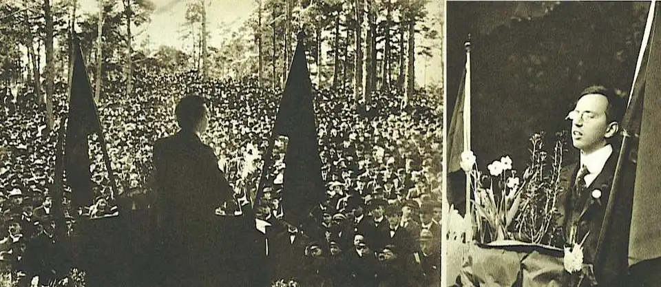 Хеглунд и Стрем были приглашены произнести речь на первомайской демонстрации 1903 года, устроенную Социал-демократической партией, с требованием 8-часового рабочего дня. Хеглунд начал выступление и был поддержан Стремом, который неожиданно стал агитировать за 6-часовую рабочую неделю и даже обещал 4-часовую рабочую неделю в социалистическом будущем.