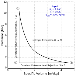 где — степень повышения давления. Эта формула чаще всего используется для расчётов КПД реактивных и газотурбинных двигателей, работающих по циклу Ленуара.