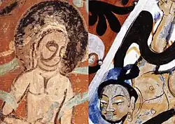 Большая часть фресок посвящена Будде, его проповедям и джатакам, а также бодхисаттвам, апсарам (феям), монахам, благочестивым верующим. Вероятно, в древности эти изображения служили для наглядного представления канонов буддизма неграмотным людям. Много росписей воспроизводят подлинные события из истории распространения буддизма.