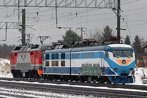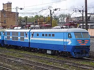 ЧС200-004 в голубо-бело-синей окраске, прицепленный к электровозу ЭП2К