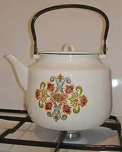 Ча́йник — полое изделие (сосуд) различной формы с крышкой, ручкой и носиком (также существуют чайники без носика), предназначенное для кипячения воды и заваривания чая[1].