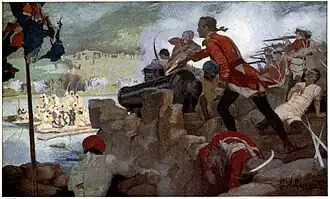 ![]() Осада Аркота (1751) была крупным сражением, которое велось между Робертом Клайвом и объединёнными силами наваба Карнатака Чанды Сахиба, которому помогало небольшое количество войск из Французской Ост-Индской компании | |