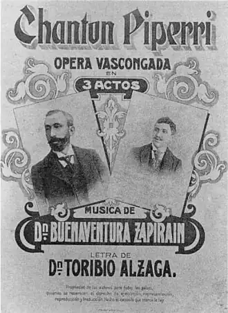 - 1 2 3 Euskarazko lehen opera estreinatu zuten arrakasta handiz: Txanton Piperri. Argia (баск.). Архивировано 19 января 2023. Дата обращения: 31 января 2023.