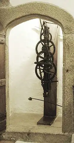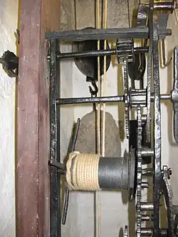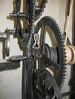 Таким образом, счётное колесо делает один оборот в 12 часов, главное колесо за это время делает 9¾ оборота, то есть 8×9¾ = 1 + 2 + 3 + 4 + 5 + 6 + 7 + 8 + 9 + 10 + 11 + 12 = 78 ударов колокола. Счётные выемки расположены на внутренней поверхности колеса.