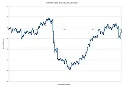 Ход часов был проверен в 2011 году и составил от +10 до −40 секунд в час, но предсказать его для каждого конкретного часа трудно: на графике хода нет повторяющегося в течение часа рисунка, вероятно, потому что передаточное отношение главной пары составляет 95:8, и, таким образом, одни и те же зубья главного колеса и шестерни ходового колеса сцепляются только через 8 часов.