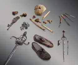В результате проведённых П. Ленером (фр. Peter Lehner) и его сестрой А. Жульен-Ленер де Зермат (Annemarie Julen-Lehner de Zermatt) археологических раскопок c 1984 по начало 1990 года учёные обнаружили старинный пистолет, верхнюю часть черепа человека, кости его рук и ног, рапиру, ножны, три ножа и складную бритву, ложку, серебряную подвеску, фрагменты выделанной кожи, стеклянные бусы, а немного в стороне — кости и зубы мулов[1][2].