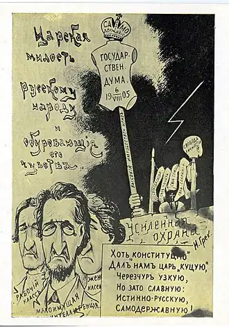 Карикатуры в тысячах экземпляров были подпольным образом отпечатаны в московской типографии Д. И. Песчанского и выпущены в виде открыток, распространявшихся нелегально. Доходы от распространения поступали в Московский комитет РСДРП и комитет Красного Креста «в пользу заключённых и ссылаемых»[11][7][3][6][12][10].