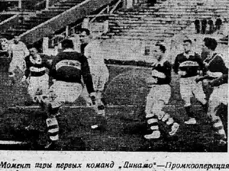 | «Динамо»: ... П.Дементьев, Вик.Федоров ... Завод им.Сталина: Шорец - ... Ивин ... |