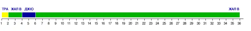 | Команда | БАН | ДАЙ | ДЖЮ | ЖАЛ В | ЖАЛ К | ПАН | СУД | ТРА | ХЕГ | ШЯУ |