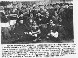 | Новогиреево: Н.Смирнов - ... Игнатов, С.Бухтеев, Н.Троицкий ... Москва: Лавров - С.Сысоев, Ауле - М.Ратов, Лепорский, М.Романов - Малюков, Абрамов, Г.Архангельский, С.Троицкий, Шапошников |