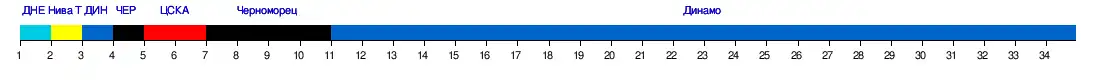 | М | Команда | ДИН | ЧЕР | ДНЕ | ЦСК | МЕТ | ЗВЕ | ТОР | КАР | КРЕ | ШАХ | ПРИ | ТАВ | НИТ | КРИ | НИВ | НИК | ВОЛ | ЗАР |