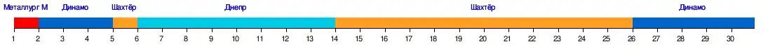 | М | Команда | ДИН | ШАХ | МТД | ДНЕ | АРС | ВОЛ | КАР | ЧЕР | ТАВ | ИЛЧ | ВОР | КРИ | АЛЕ | ОБО | МТЗ | МТХ |