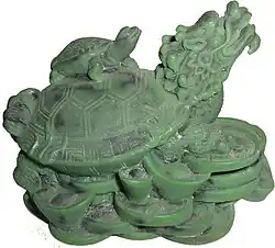 Черепаха (кит. трад. , упр. , пиньинь guī, палл. гӯй) в разнообразных проявлениях занимает немаловажное место в китайской мифологии. Её образ отражен в нескольких традиционных мотивах китайского искусства, включая «чёрную черепаху севера» Сюаньу, черепаху-носителя текста биси, и «драконочерепаху», популярную в качестве фэншуйного украшения.
